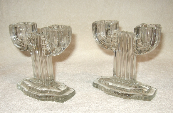 Antique Queen Mary Depression Glass Candlestick Holders