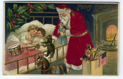 Title (ebay affiliate link): 1908 Velvet Santa Claus CHRISTMAS POSTCARD w/ Xmas Seal