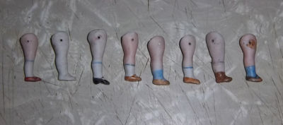 8 Small Antique Wiring Bisque Legs - Marked - Germany