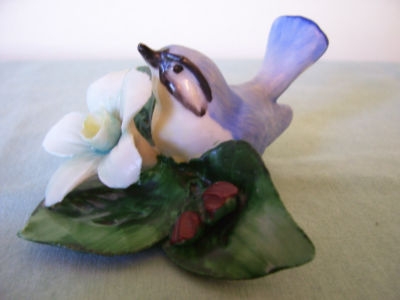 VINTAGE CAPODIMONTE BIRD FLOWER CERAMIC FIGURINE VGC