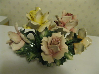 CAPODIMONTE VINTAGE 6 ROSE BASKET MADE IN ITALY