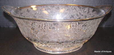 Title (ebay affiliate link): CLEAR DEPRESSION GLASS ETCHED TWO HANDLED FLORAL BOWL