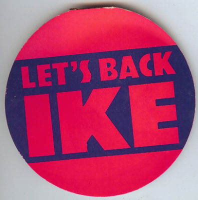 Title (ebay affiliate link): UNUSUAL 4" LET'S BACK IKE EISENHOWER CARDBOARD PIN-BACK