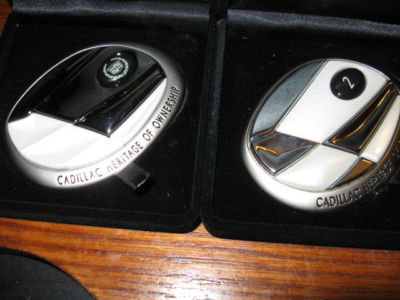 Title (ebay affiliate link): 2 CADILLAC HERITAGE MEDALLIONS 1 & 2 YEAR PRESENTATION