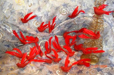 Title (ebay affiliate link): Lot of 24 Tiny Feather Tree Red Birds - Vtg Christmas