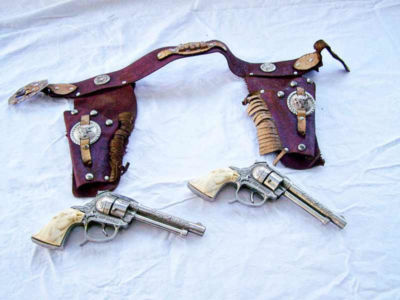 2 Vintage Roy Roger toys Guns Leather Holsters & belt