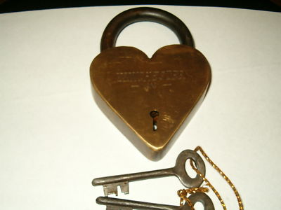 Solid Brass Winchester Heart Padlock with 2 Keys Nice