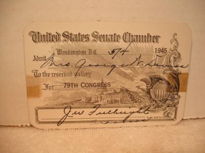 Title (ebay affiliate link): 1945 Senate and House pass cards signed Sen. Fulbright
