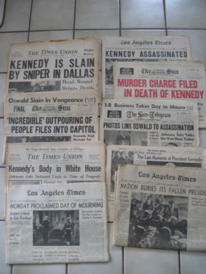 Title (ebay affiliate link): Kennedy 1963 Newspaper Headline Covers - Quantity 9
