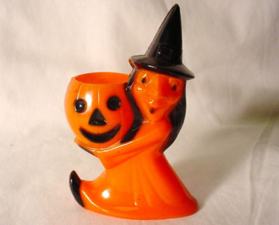Title (ebay affiliate link): Halloween Witch Plastic Candy Container Rosbro No Glass