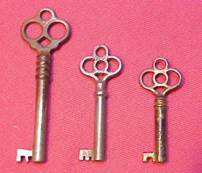 3 WONDERFUL OLD ANTIQUE FURNITURE BARREL KEY NR