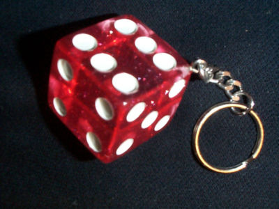 Title (ebay affiliate link): Vintage Dice metal flake Red key chain Hot Rat Rod sled