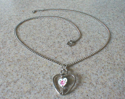 Vintage Silver Chain Dangling Heart/Key Necklace