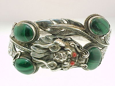 Title (ebay affiliate link): Antique Sterling 28ctw Malachite Figural Bracelet 42.2g