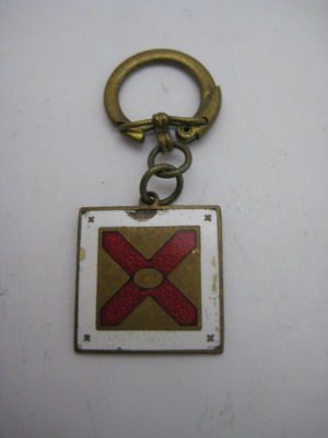 VINTAGE LUCKY LAGER KEYCHAIN - BRASS & ENAMEL