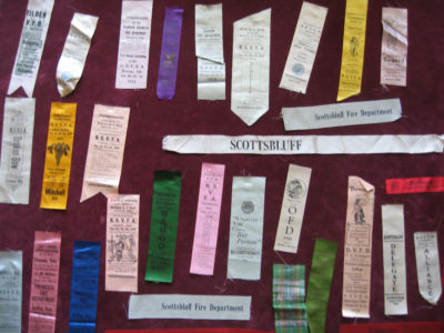 LOT OF 30 ANTIQUE FIRE DEPARTMENT BADGE RIBBON FLAG OLD