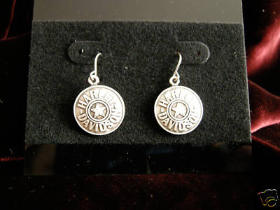 Harley Davidson -Silver Antique Round Earrings NEW