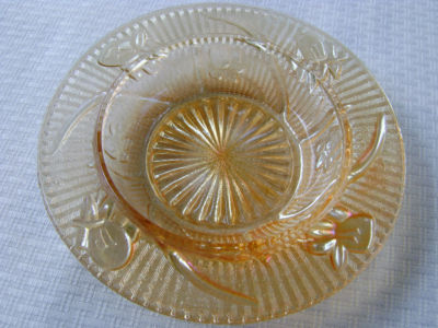 Iris and Herringbone Carnival Glass Dish