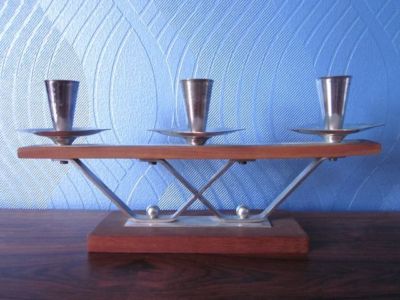 Title (ebay affiliate link): Modernist candle holder TEAK & silver plate ATOMIC 50s