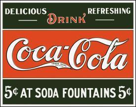 Title (ebay affiliate link): COCA COLA Coke 5 Cents at Fountain Tin Sign 1052