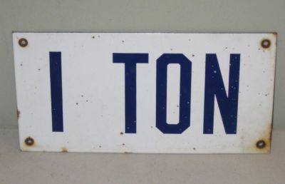 VINTAGE ORIGINAL 1 TON Porcelain Sign