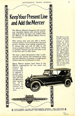 1922 MERCER CAR AD. Add Mercer to Your Present Line