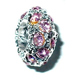 European Antique Silver Bead w/Lt Pink Stone FitPandora
