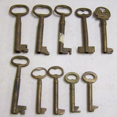 Title (ebay affiliate link): 10 ANTIQUE Brass SKELETON FURNITURE CABINET & LOCK KEYS