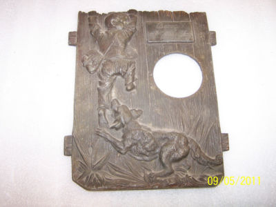 ANTIQUE BEWARE OF THE DOG CAST METAL FIGURAL CLOCK CASE