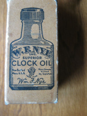 Antique Wm F Nye Clock Oil Bottle w/ Box and Insert