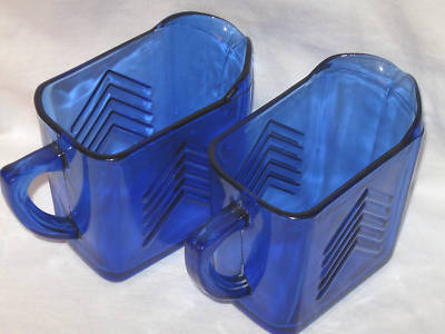 2 HAZEL ATLAS CHEVRON COBALT DEPRESSION GLASS PITCHERS