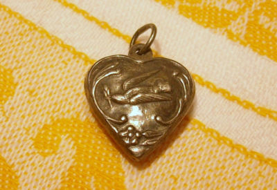 Title (ebay affiliate link): Antique Sterling Silver PUFFY HEART Charm DOVE Olive