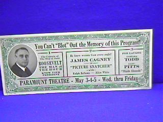 1930/40s BLOTTER-AD-FDR-Roosevelt-Man of Hour+Cagney++
