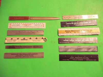 12 VINTAGE ADVERTISING RULERS 1940'S-WOOD-METAL-PAPER
