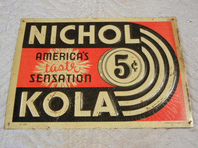 NICHOL KOLA 5 CENT EMBOSSED TIN SIGN