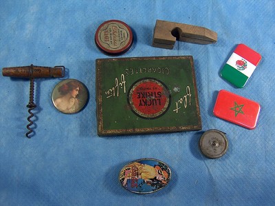 Old Lucky Strike, Coca Cola, Tape Measure, Cork Screw.