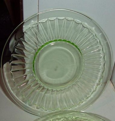 THREE 6" GREEN DEPRESSION GLASS DESERT PLATES