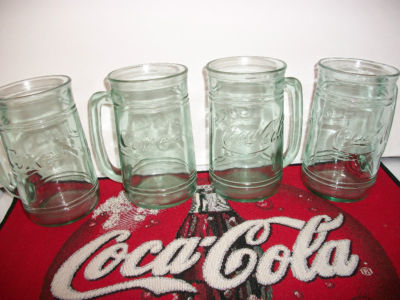 4 VINTAGE COCA COLA GLASS MUGS