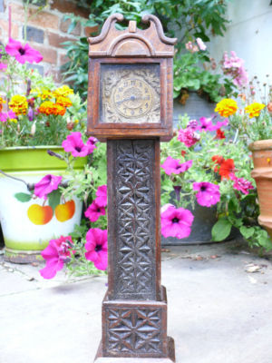 SUPERB 19thc OAK CARVED MINIATURE GRANDFATHER CLOCK