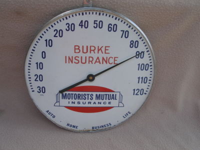 12"Vintage Burke Motorists Mutual Insurance Thermometer