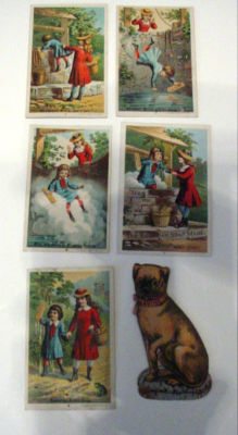 Title (ebay affiliate link): 6 VICTORIAN TRADE CARDS Acme Soap Series 1-5 Willie in Well, Lavine dyecut Dog