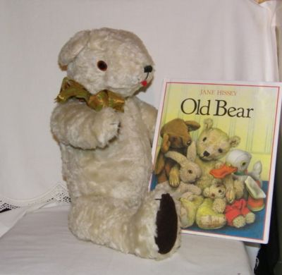 THIS OLD BEAR & BOOK HE'S 17" TALL STRAW STUFFED
