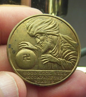 Title (ebay affiliate link): Swami Swastika Elephant All Seeing Eye Good Luck Token