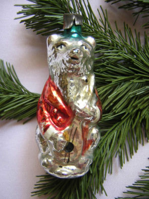 OLD RUSSIAN GLASS CHRISTMAS ORNAMENT BEAR
