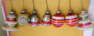 Title (ebay affiliate link): Vintage Shiny Brite Mercury Glass Christmas Ornaments Bells Balls Indent Stripes