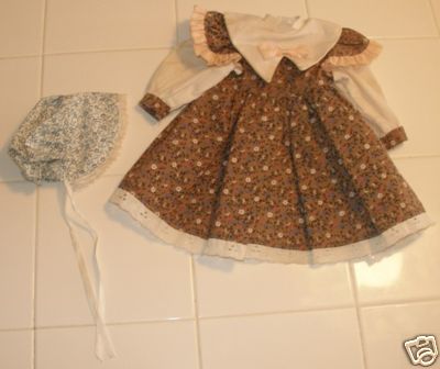 Old VTG Antique Doll Clothes Lined Dress Slip Bonnet