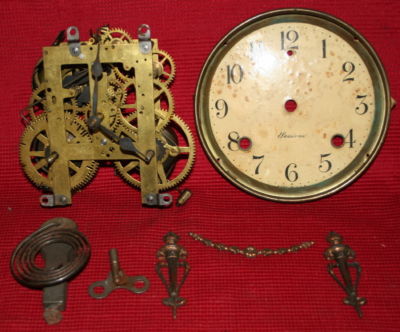 Antique Sessions 8 day clock movement w/ key & extras