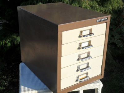 Vintage 50s Industrial BISLEY Desk Metal Filing Cabinet