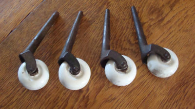 Title (ebay affiliate link): Antique Large Porcelain & Cast Iron Furniture Casters, Lot of 4 Matching