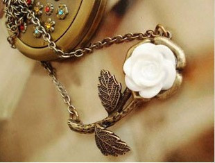 Title (ebay affiliate link): White resin rose bronze vintage retro antique style long necklace jewellery